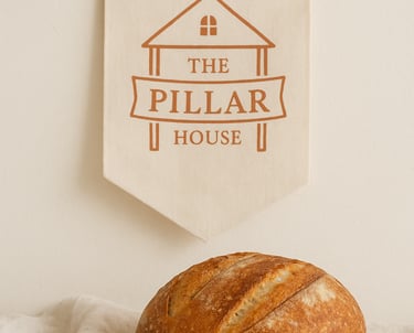 Thank you so much for being here and welcome to The Pillar House Co. — a little place where flour-dusted mornings meet paint-splattered afternoons, and every week brings something new to the table. After years of teaching, I felt called to trade the classroom for a slower, more intentional life — one where I can bake fresh treats, paint banners that make spaces sing, and share the magic of seasonal living with my friends and neighbors. The Pillar House is my way of offering you simple, beautiful things that make your home feel warm and alive — whether it’s a loaf on the counter or a banner hanging on the wall.